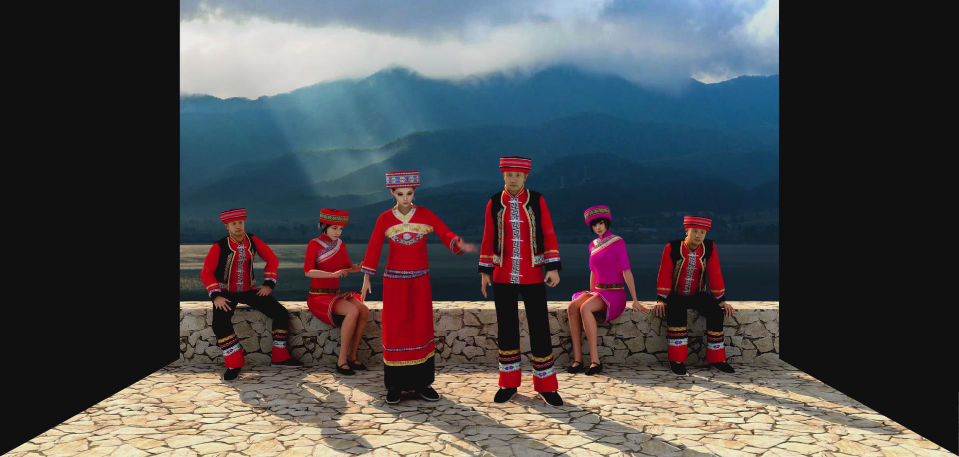 彝族民歌是彝族文化的一個重要載體,它記錄彝民族的歷史、科學、生產生活、傳統習俗、哲理、等豐富多彩的彝族文化。彝族民間有各式各樣的傳統曲調,諸如爬山調、進門調、迎客調、吃酒調、娶親調、哭喪調等。通過三維動畫展示彝族文化的形式,畫面立體感很強,非常吸引人。